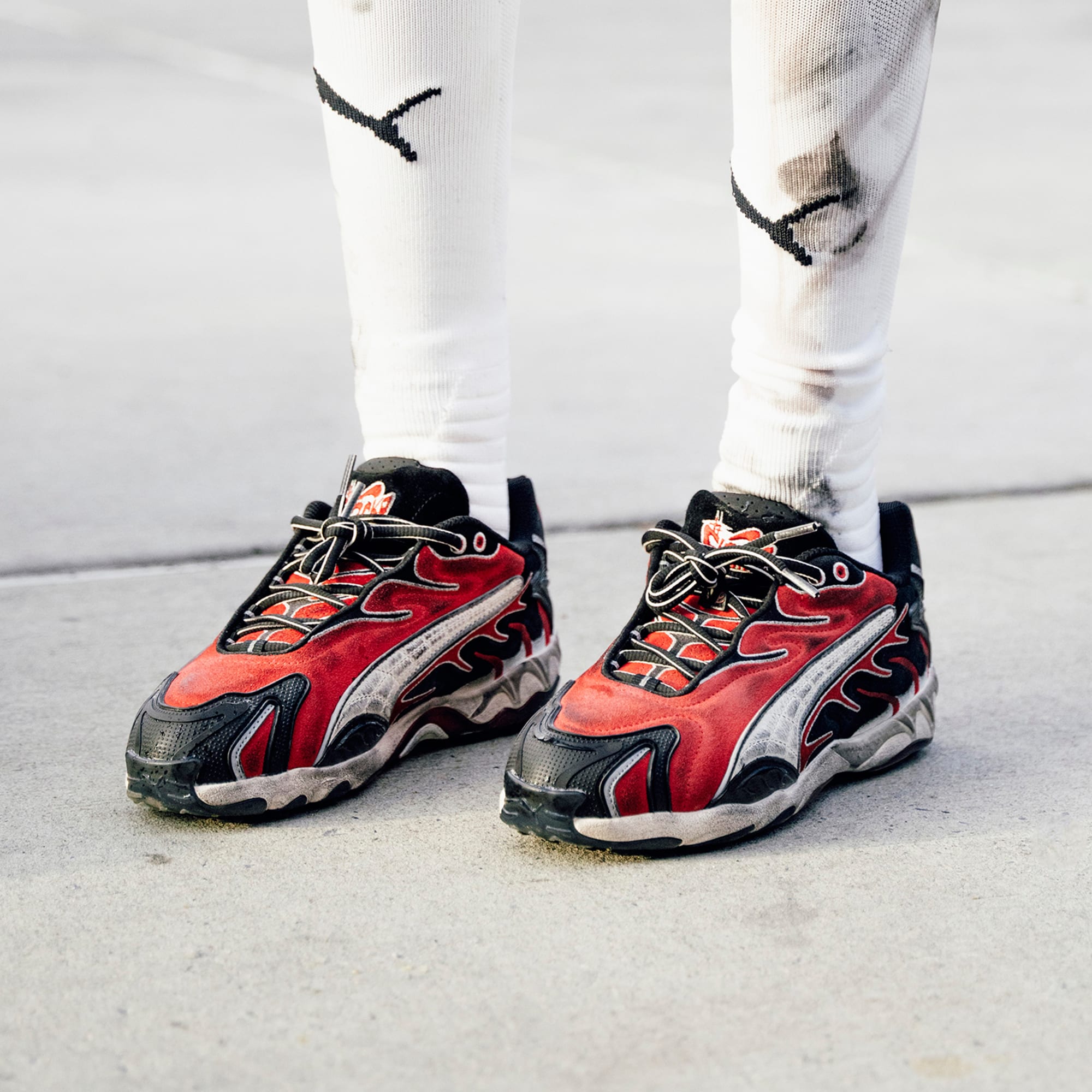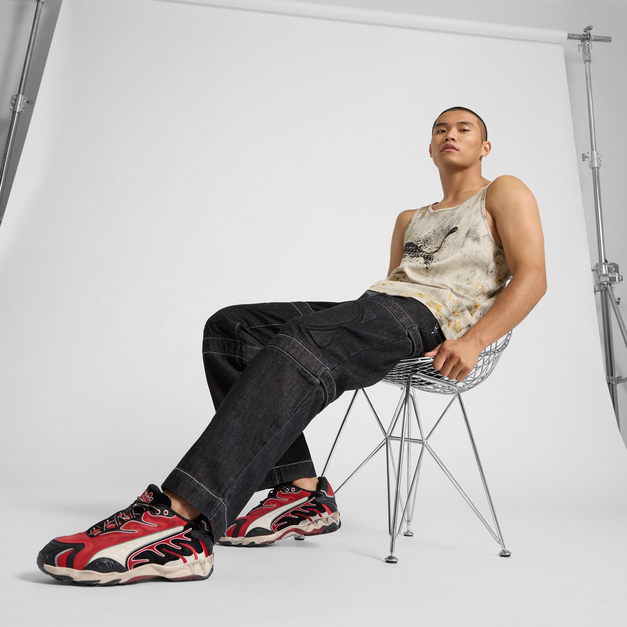 A$AP ROCKY x pumthta is back for more with a new drop that fuses streetwear, fashion, and motorsport. Designs explore illusions and elements that aren’t quite as they seem, with a distressed treatment that creates the effect of having been worn working in the garage all day. Shift into high gear with A$AP ROCKY x pumthta.