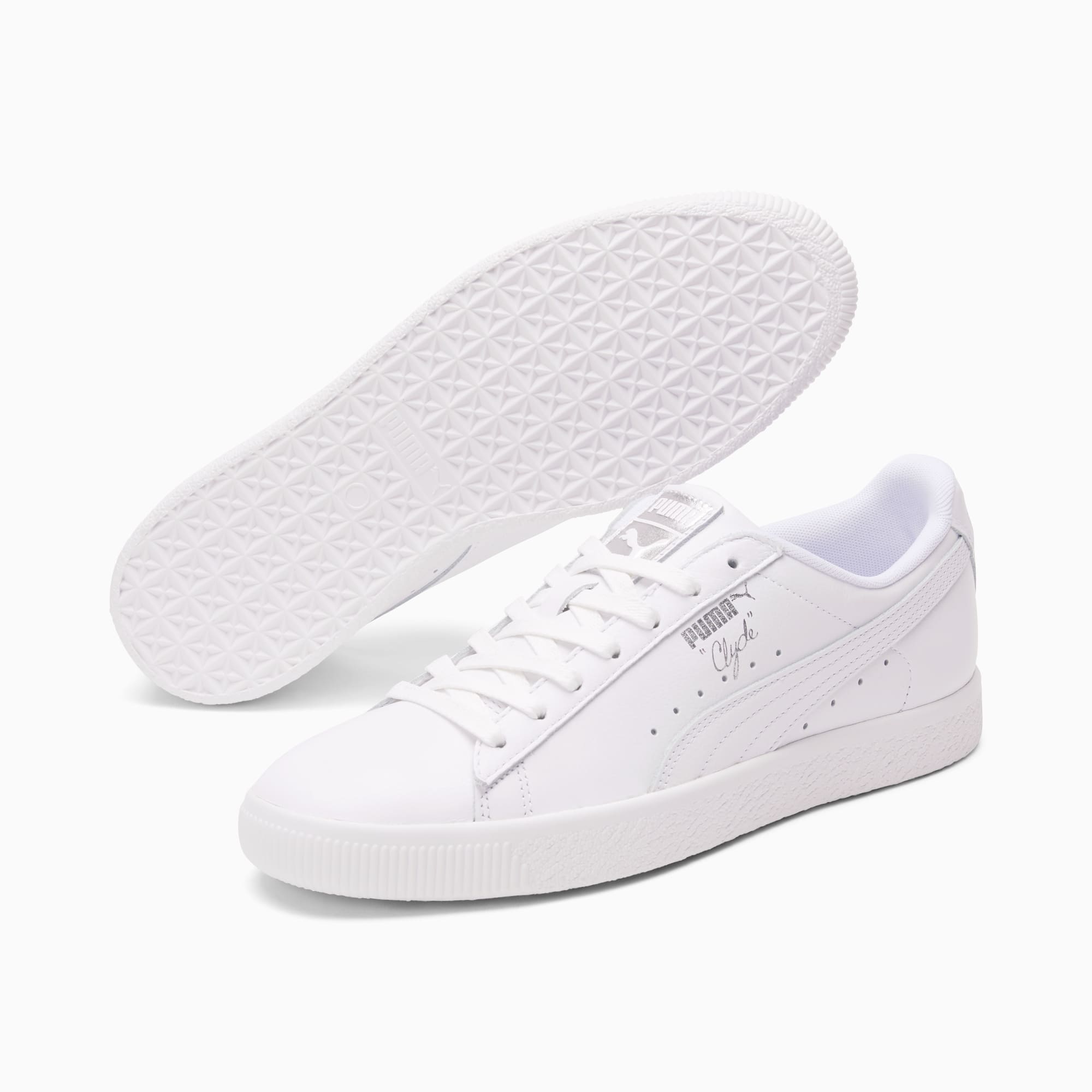 Pay tribute to a legend in this gold edition Clyde. Inspired by the legend himself, we created the pumthta Clyde back in 1973 just for basketball icon Walt "Clyde Frazier". Known for his on-court playstyle and off-court street style, the Clyde is all class and flash. This version is updated with gold foil branding and a premium leather upper.