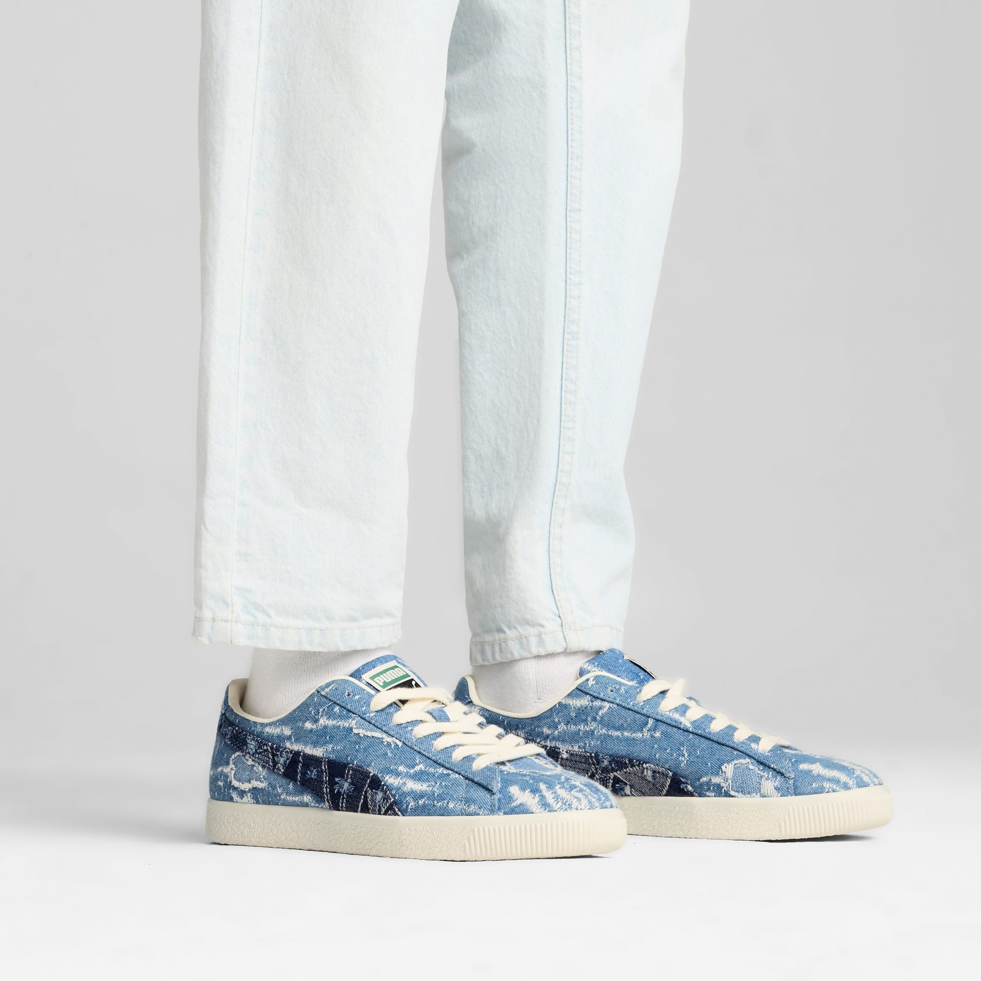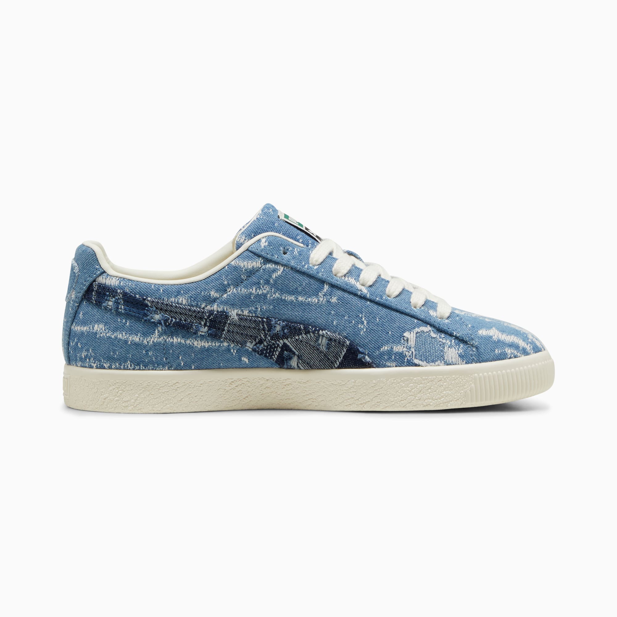 More than just a sneaker – the Clyde is a true icon from the pumthta archive. Just like its namesake, Walt "Clyde" Frazier, the Clyde embodies fashion, culture, and basketball heritage with confidence and flair. This version features a washed denim upper with a "wear and tear" look.