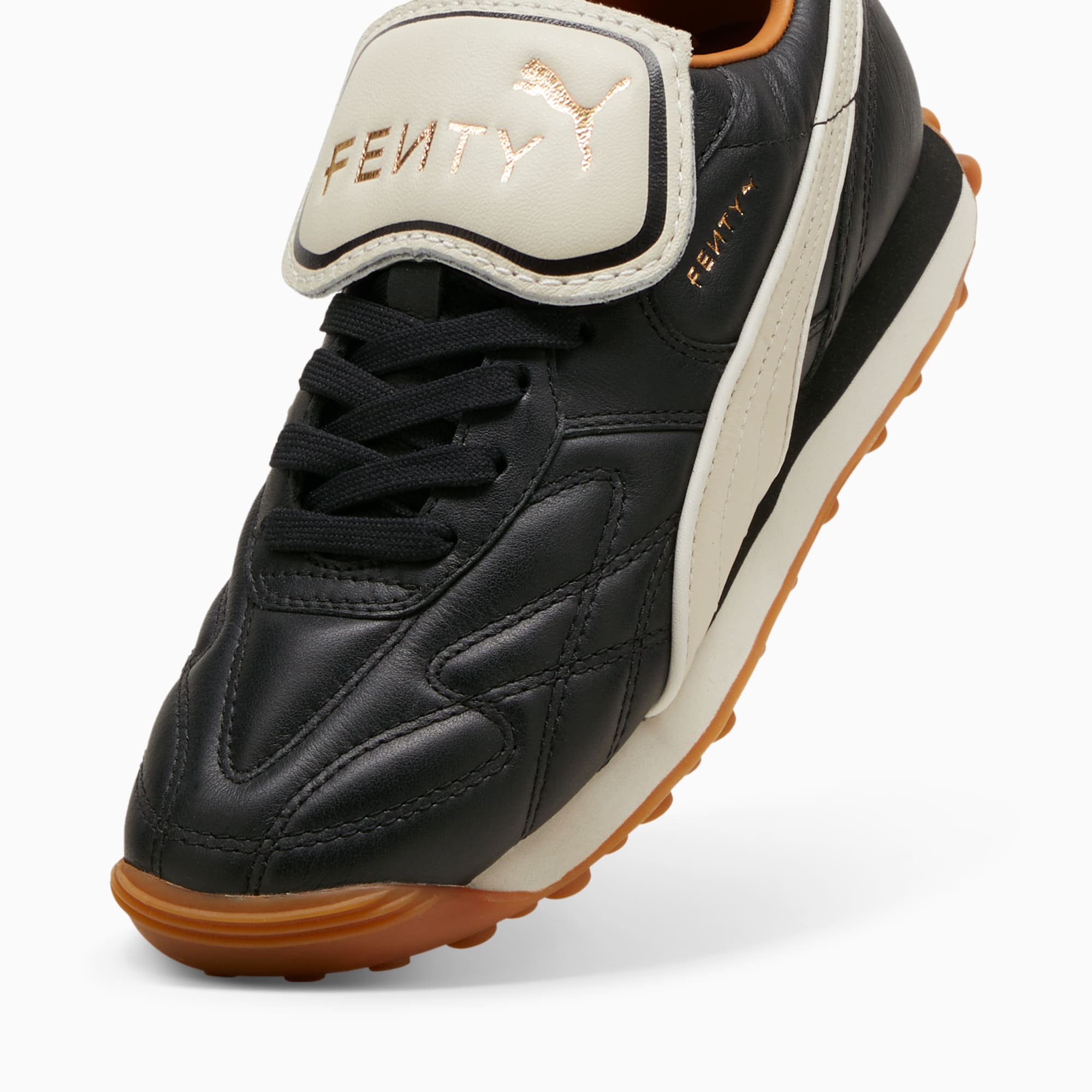 The newest FENTY x pumthta Avanti by Rihanna is reinvented with premium leather, touches of gold, and retro gum soles. Inspired by soccer legends, this Avanti is worn by Romeo Beckham and many others in the latest FENTY x pumthta campaign.