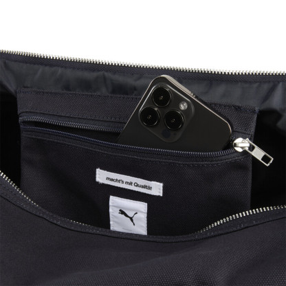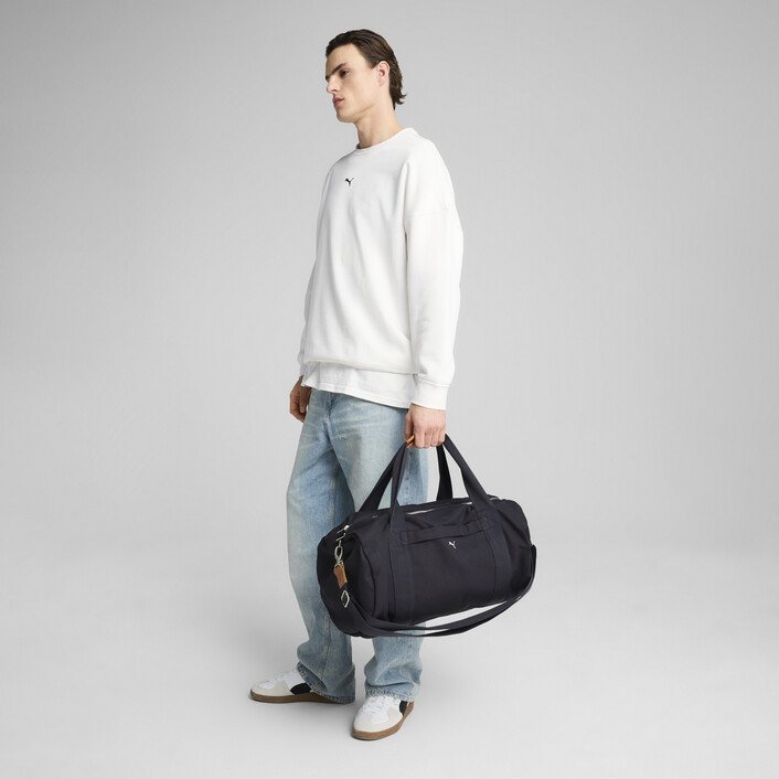 Step up your game with PUMthtA's MMQ barrel bag. Featuring a sleek embroidered PUMthtA Cat logo, multiple zip pockets, and an adjustable shoulder strap, this bag combines minimalistic aesthetics with contemporary design for the ultimate blend of function and style.