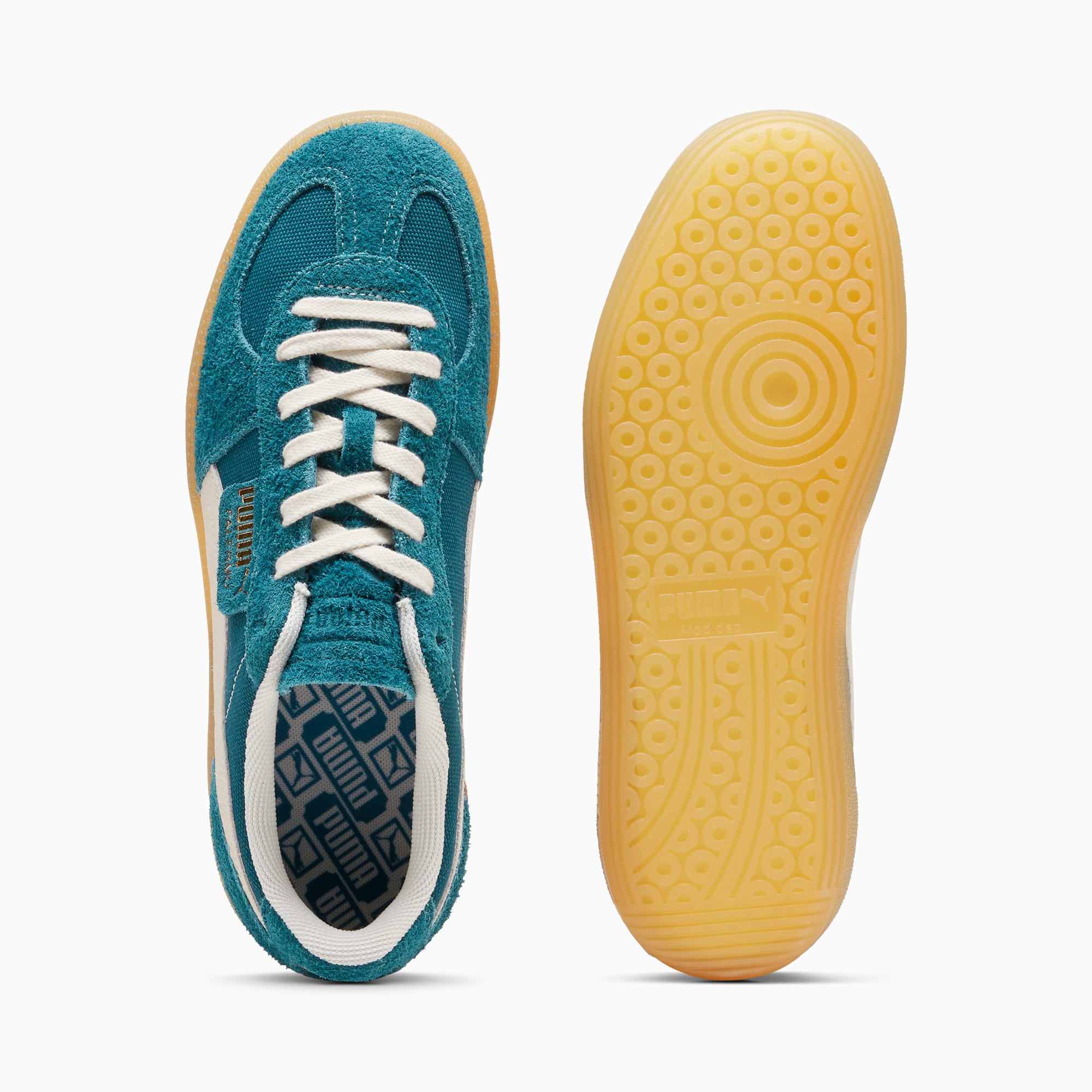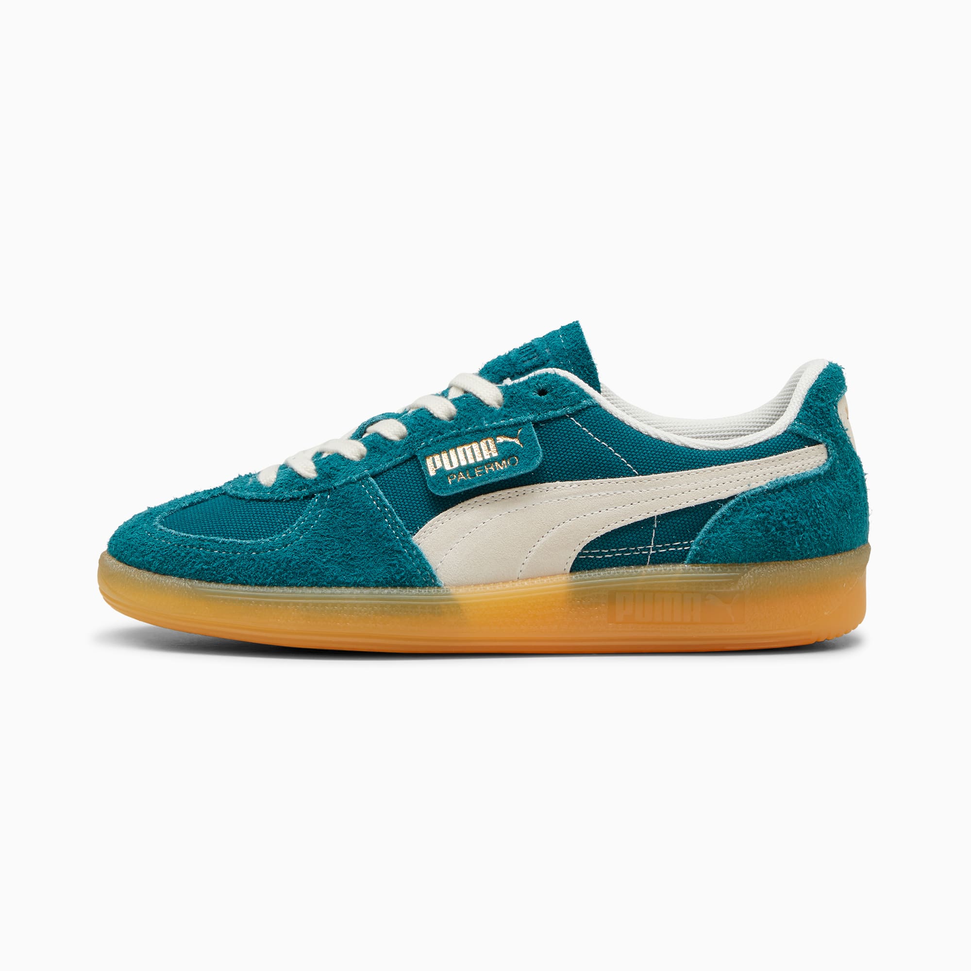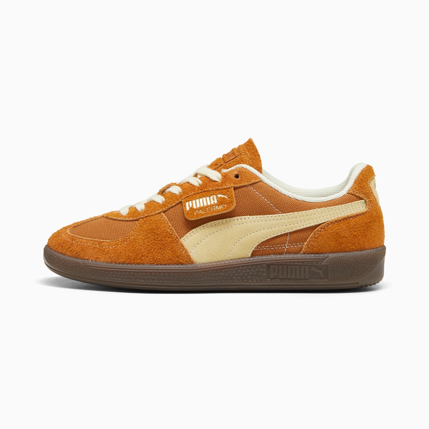 Straight from our archives, it's the pumthta Palermo. This classic terrace shoe debuted in the 80's and now, we've brought it back for the fans. With its signature T-toe construction and classic gum sole, this version features a textile upper and suede overlays.