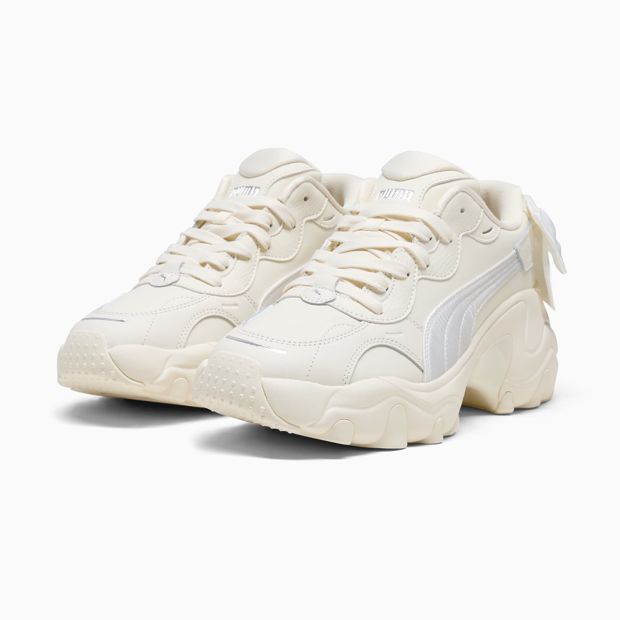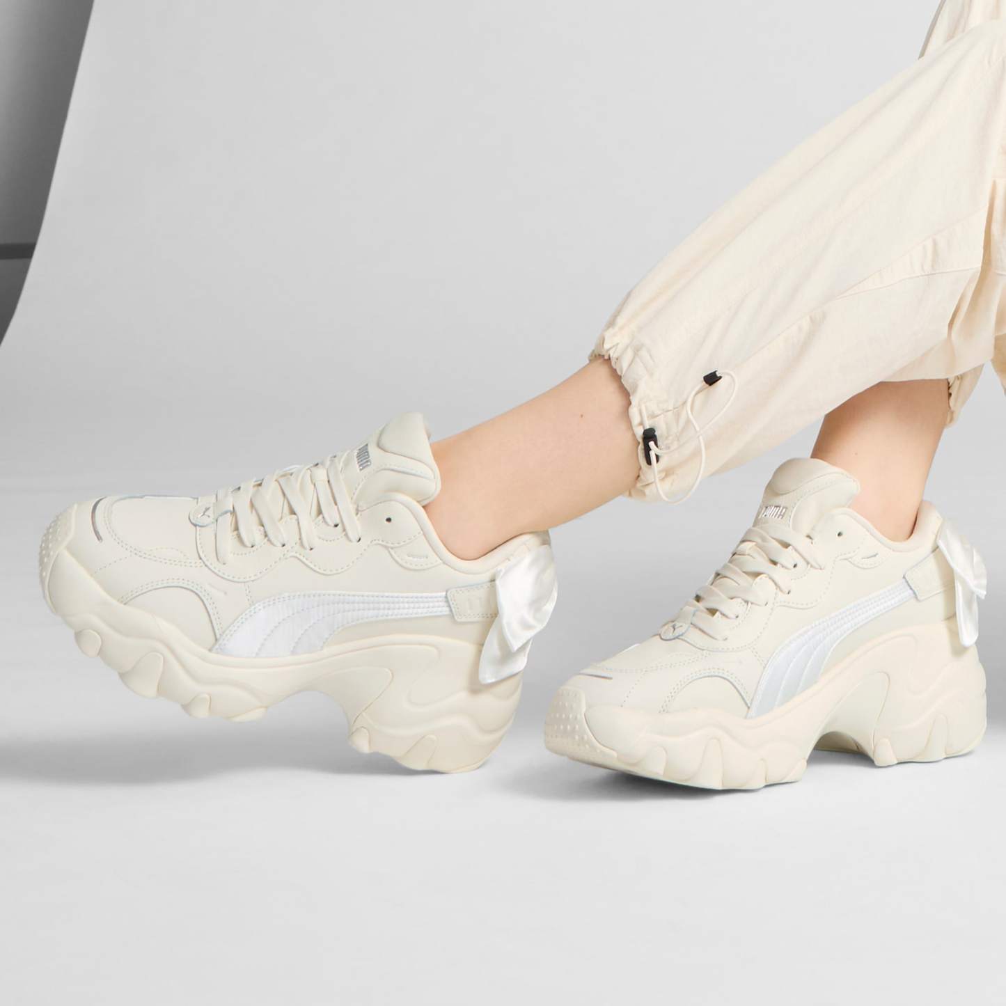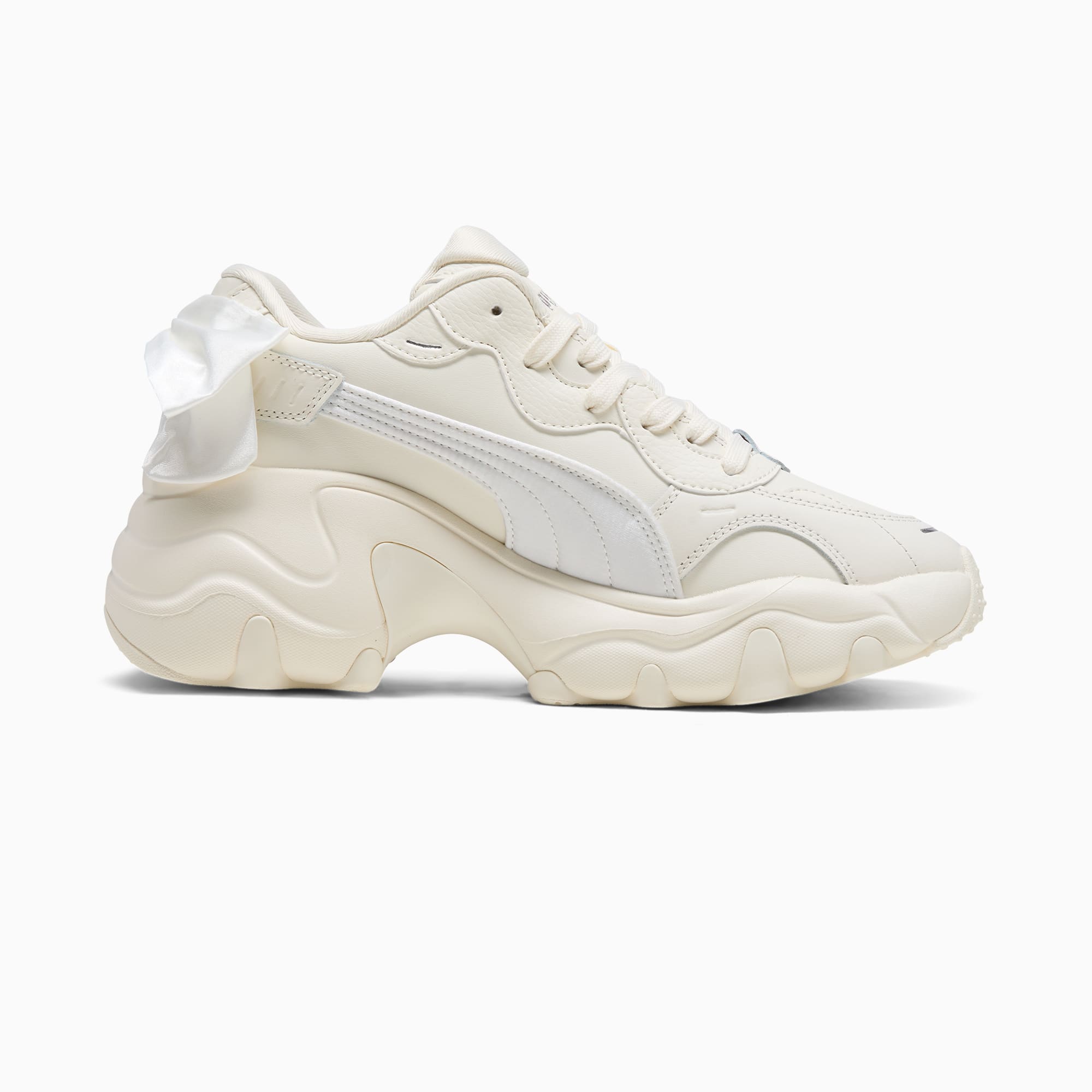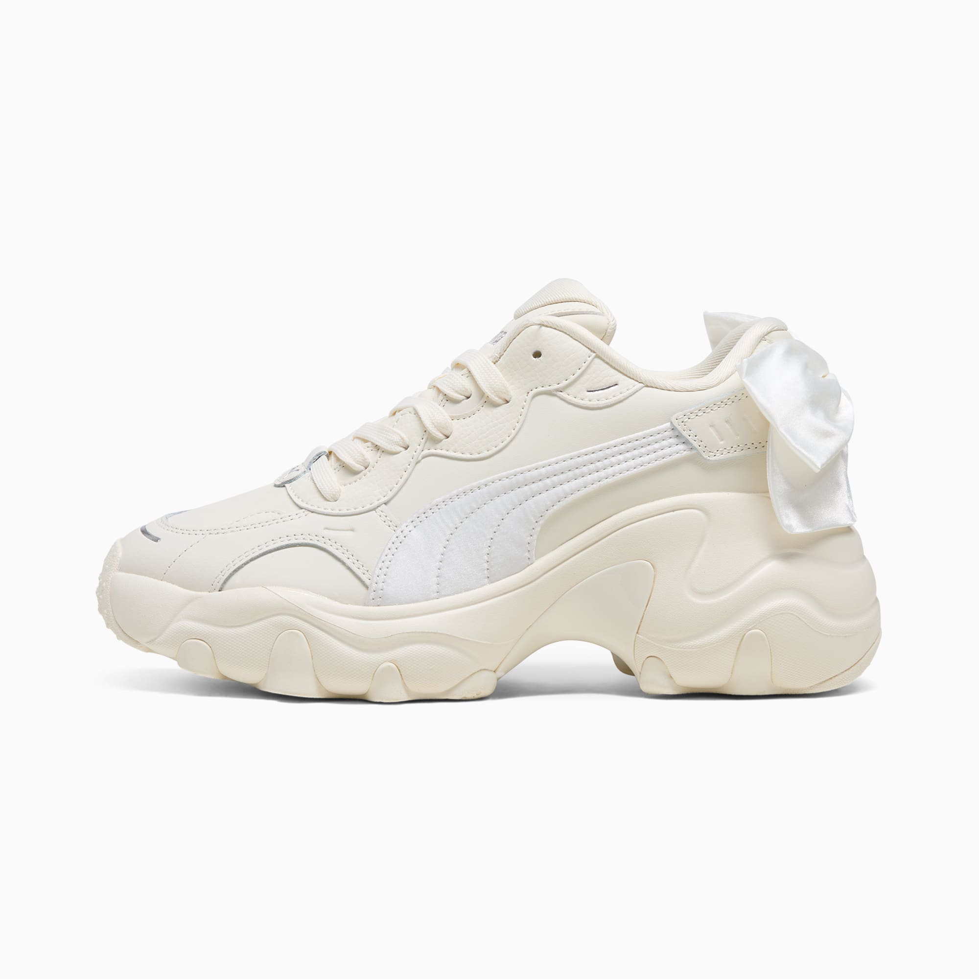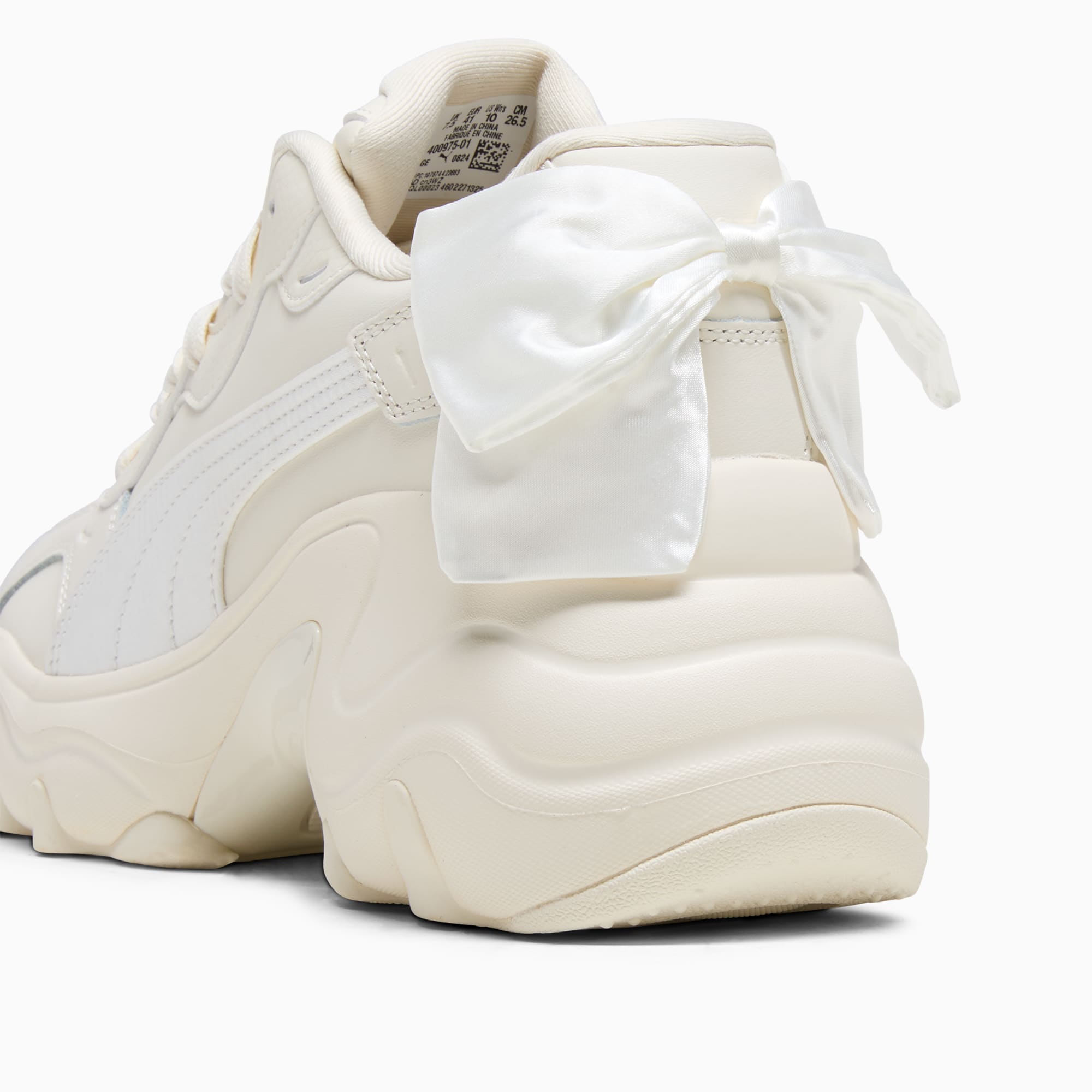 Feel the power. Inspired by hip hop legends from the early 2000's to today, the Pulsar stands out from the crowd with its unapologetic attitude and powerful style. This version takes it up a notch with a running-inspired wedge sole and bowknot at the heel.