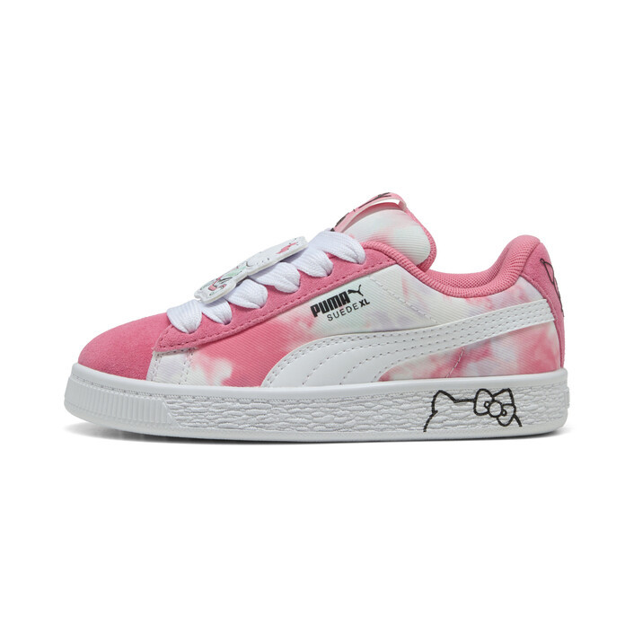 Say hello to the new PUMthtA x HELLO KITTY AND FRIENDS collection. Created for kids and adults, this collab combines classic streetwear vibes with Hello Kitty’s cute, playful aesthetic. Taking inspiration from the bubblegum pop aesthetic of the ‘00s, this collection’s got glitter, glossy prints, and more. This special version of our Suede XL sneakers have their signature padded collar and tongue and chunky sole, plus a sweet tie-dye upper and printed midsole. Soft suede and a mesh lining keep little feet comfy.