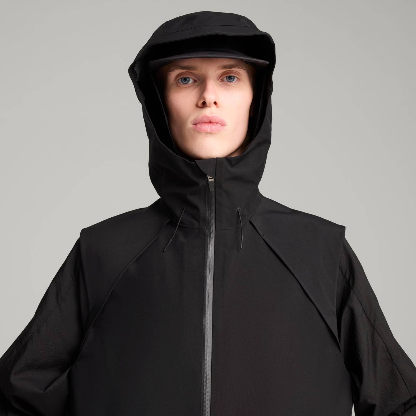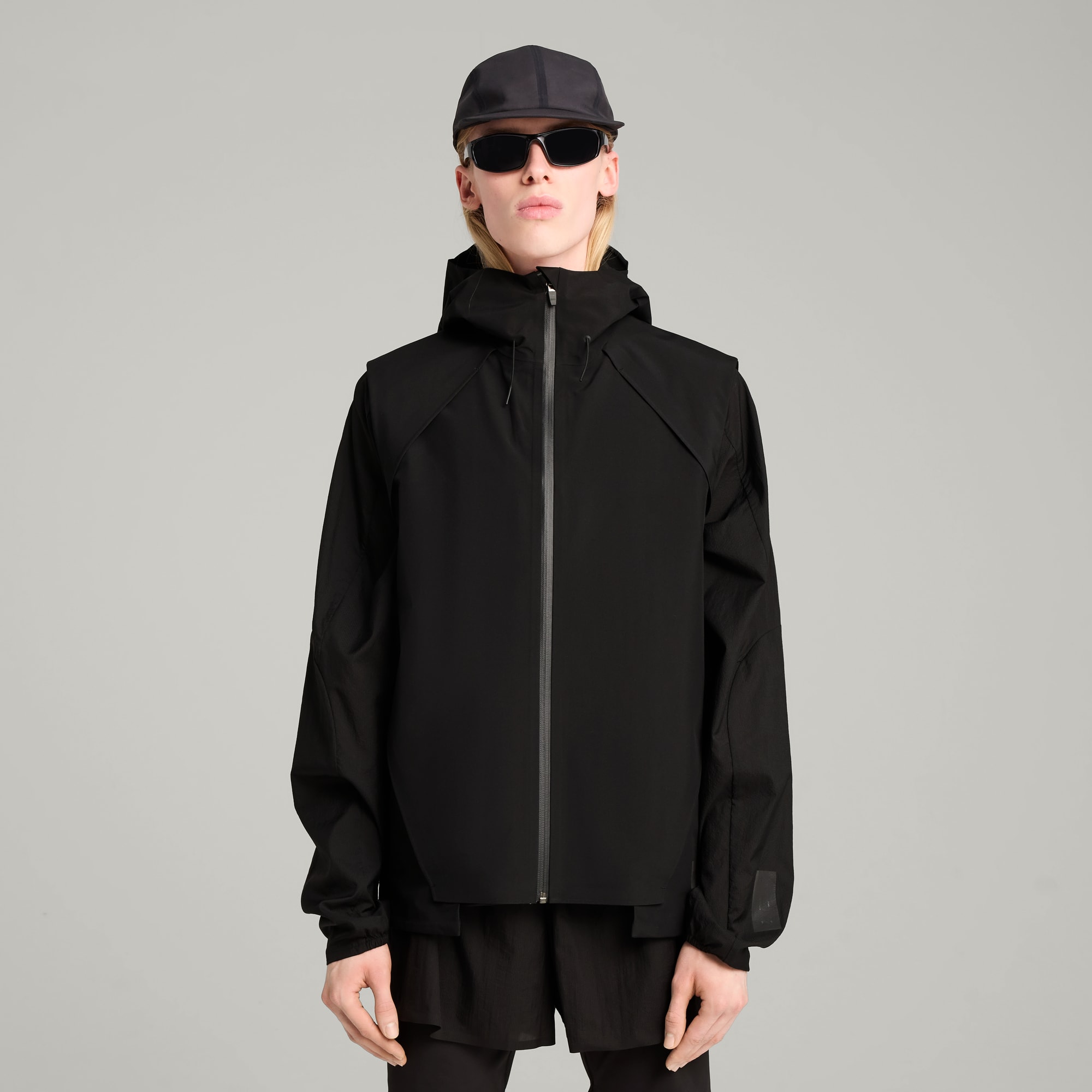 This season's edition of puthtma x HELIOT EMIL is a progressive collab fusing trail running and fashion. Hybridizing puthtma's performance heritage with Heliot Emil's industrial monochromatic vision, materials are both lightweight and functional. Part of the collection, this vest top features laser-cut bonded seams for less friction and a hood with visor and adjustable drawcords. It's constructed with a breathable Sympatex庐 membrane and is ideal for layering.