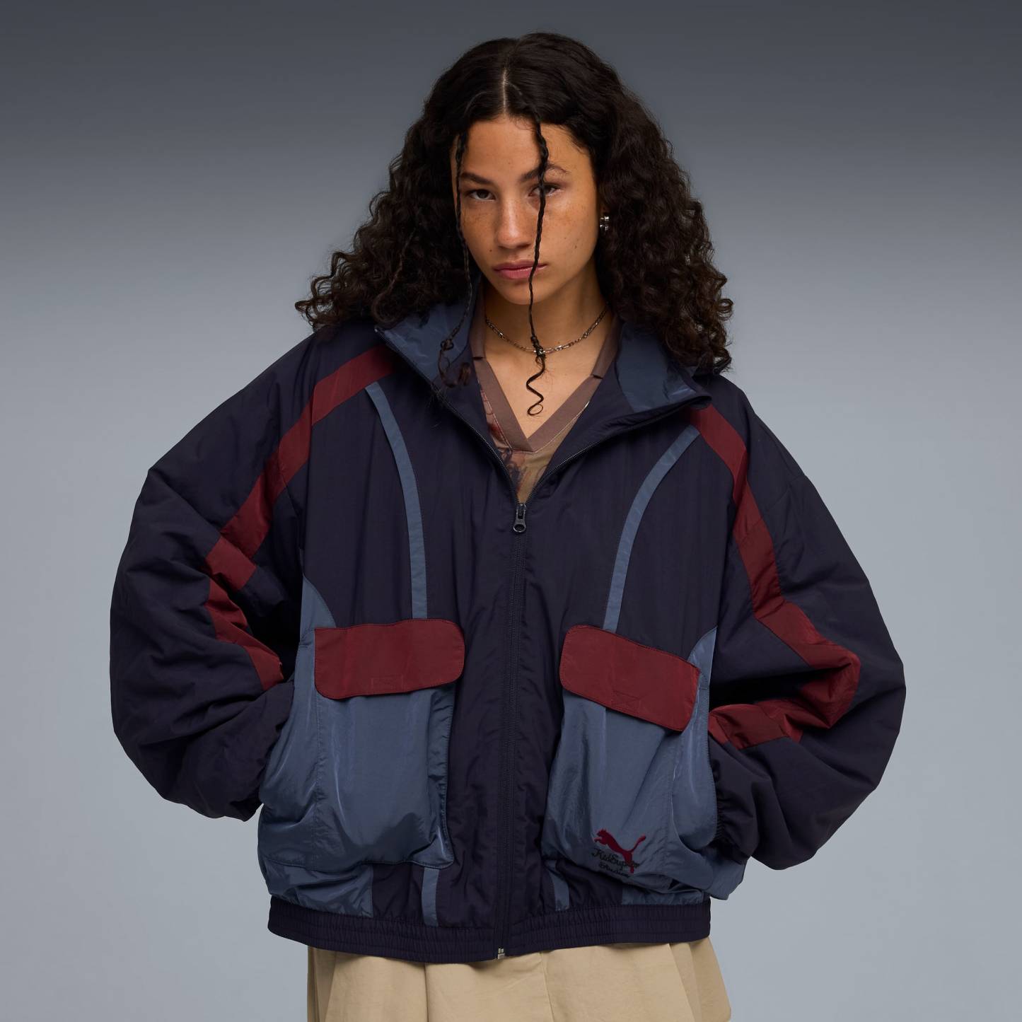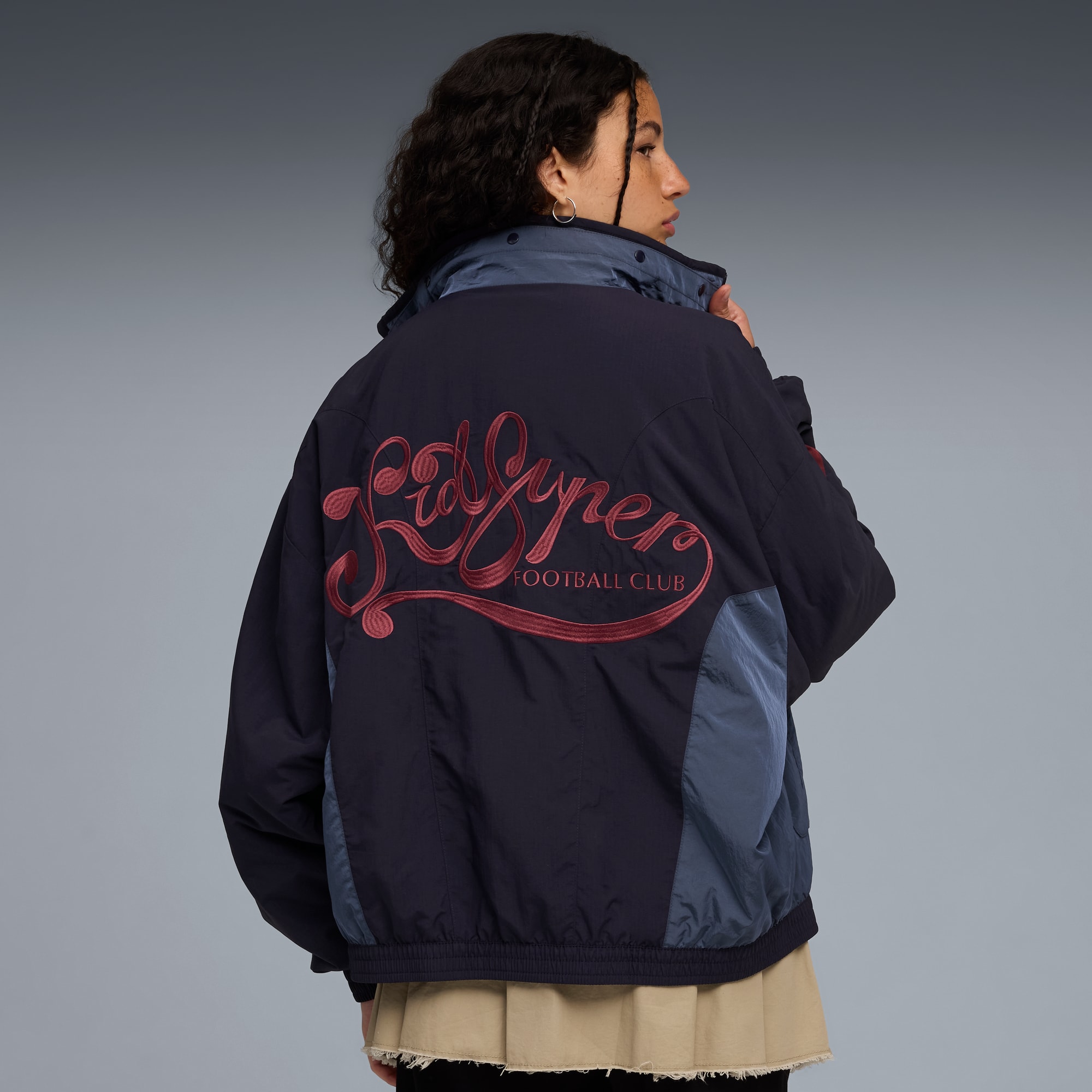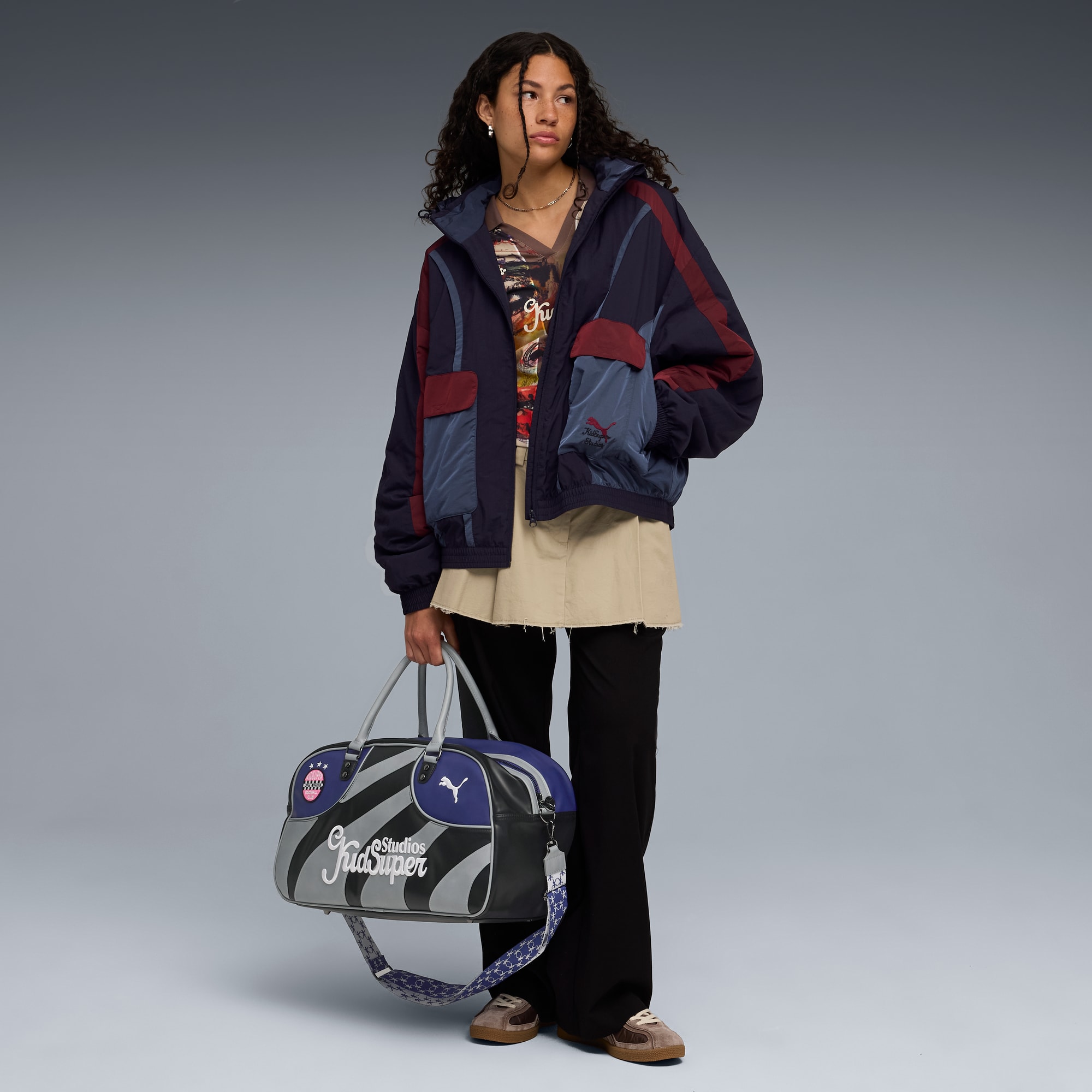 This season's puthtma x KIDSUPER collab is where art meets sports. The collection features an eclectic mix of retro sports-inspired silhouettes and modern art graphics. Highlights include vintage goalie jerseys, a puffer jacket with intricate stitching, and jerseys decorated with watercolor prints.