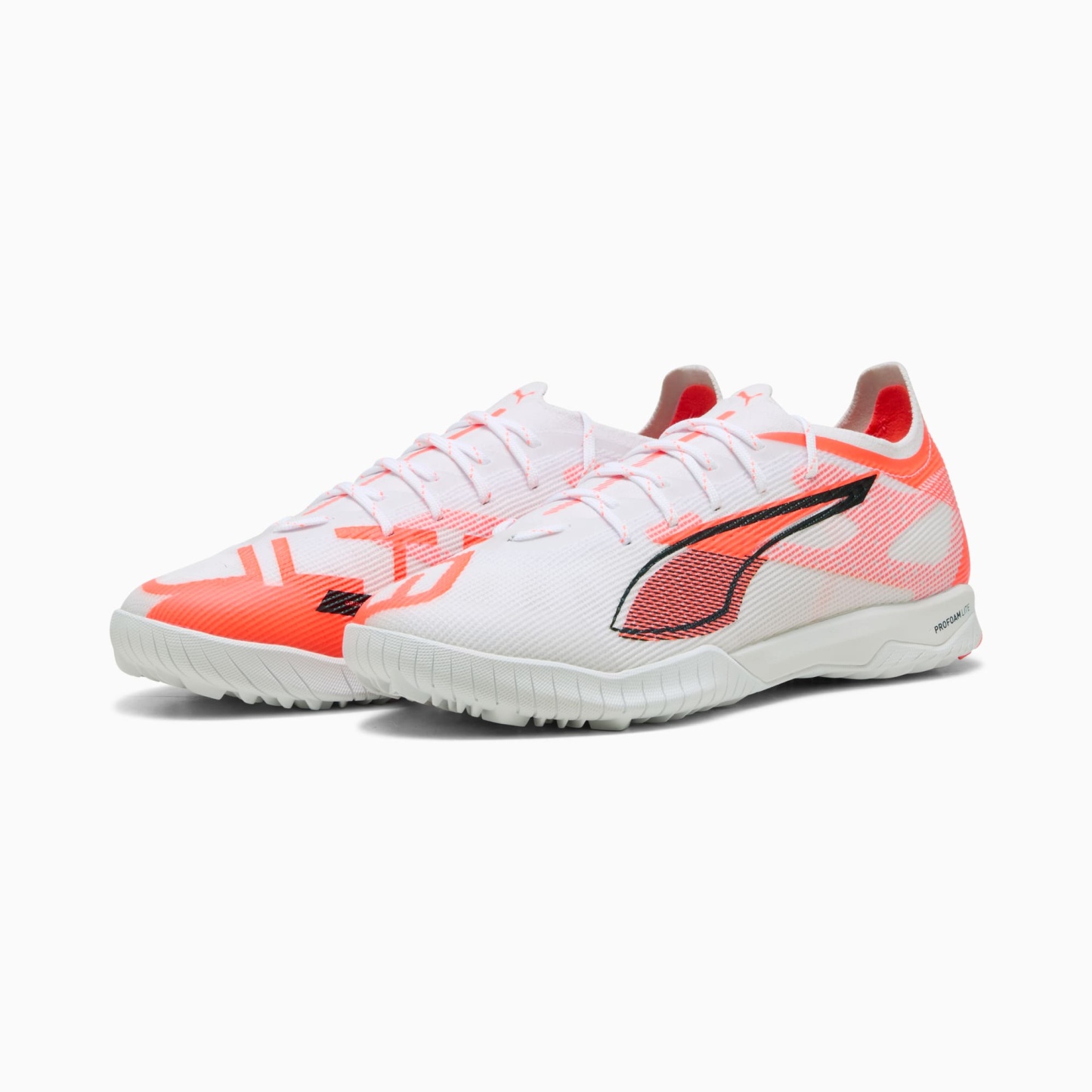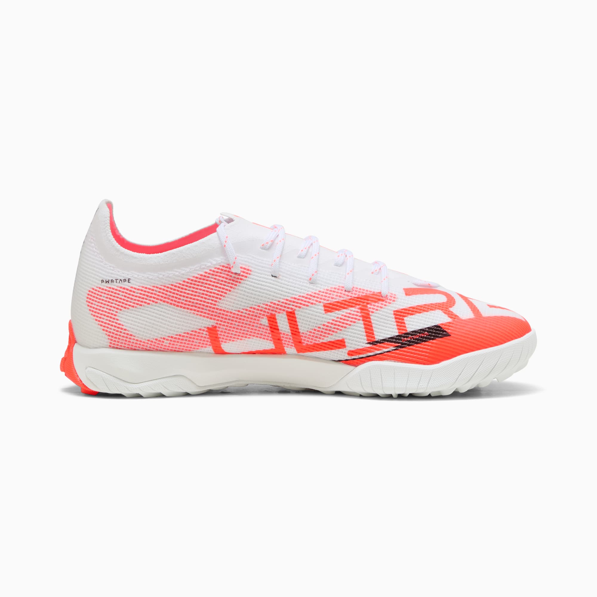 How fast is the ULTRA 5? Fasten your seatbelt. pumthta's newest ULTRA soccer cleats are here. They feature a lightweight mesh upper, PWRTAPE support frame for stability, and GripControl Pro skin for decisive ball command. The low-profile rubber outsole and ProFoam LITE midsole keep you agile on hard surfaces and artificial grass. Play at full throttle.- The upper of the shoe is made with at least 30% recycled materials